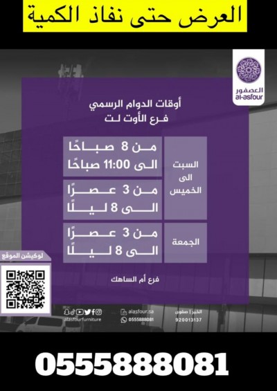 ”العصفور“ للأثاث المخفض فرع الاوتلت عروض قوية تستمر حتى نفاذ الكمية أوقات الدوام: من السبت إلى الخميس: من 8 صباحآ إلى 11 ظهرآ ... |