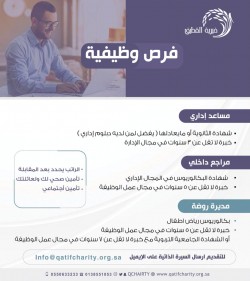 تعلن جمعية القطيف الخيرية عن توفر وظيفة شاغرة