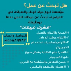 العوامية.. وظيفة ”مشرف مبيعات“ شاغرة