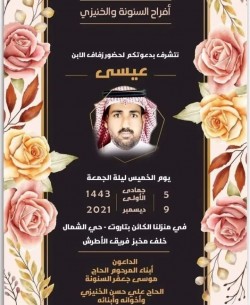 رُزق الشاب حسين يوشع حسين آل ناصر بمولود اتفق وحرمه زينب عبدالله حسين آل ناصر على تسميته «يوشع». أسرة ”جهينة الإخبارية“ تبارك له على المولود جعله الله من مواليد السعادة واقر الله به عين والديه. ‏ ...
