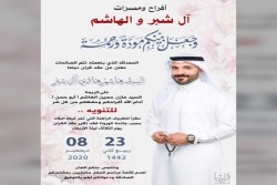 احتفلت عائلة آل شبر والشاعر في العوامية مساء يوم الخميس بعقد قران السيد أحمد السيد هاشم آل شبر على كريمة الحاج هاني الشاعر وسط فرحة الأهل والأصدقاء ومحبي العريسين. اسرة ”جهينة الإخبارية“ تهنئ العريسين وعائلتيهما وتسأل الله ان يبارك لهما، متمنين لهما حياة سعيدة. ...