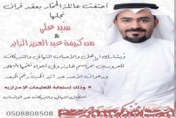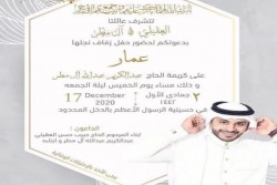 احتفلت عائلة الحمّار والزاير في حلة محيش بعقد قران الشاب السيد علي السيد حسين الحمّار على كريمة الحاج عبد العزيز الزاير وسط فرحة الأهل والأصدقاء ومحبي العريسين. يستقبل التهاني والتبريكات عبر الواتس آب على الرقم 0508808508 اسرة ”جهينة الإخبارية“ تهنئ العريسين وعائلتيهما وتسأل الله ان يبارك لهما، متمنين لهما حياة سعيدة. ...
