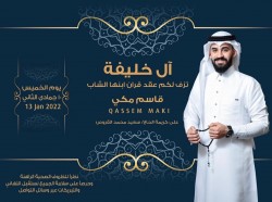 تحتفل عائلة آل خليفة والقروص مساء يوم الخميس بزفاف الشاب قاسم مكي آل خليفة على كريمة الحاج سعيد محمد القروص وسط فرحة الأهل والأصدقاء ومحبي العريسين. وعبر العريس عن سعادته الغامرة بدخوله القفص الذهبي، سائلا الله أن يوفقه وعروسه ويرزقهما الذرية الصالحة. أسرة ”جهينة الإخبارية“ تهنئ العريسين وعائلتيهما وتسأل الله ان يبارك لهما، متمنين لهما حياة سعيدة ‏ ...