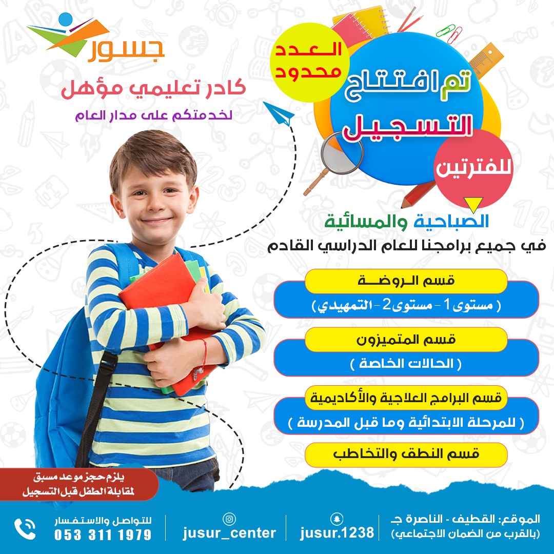 تم افتتاح التسجيل في ”مركز جسور“ للفترتين الصباحية والمسائية