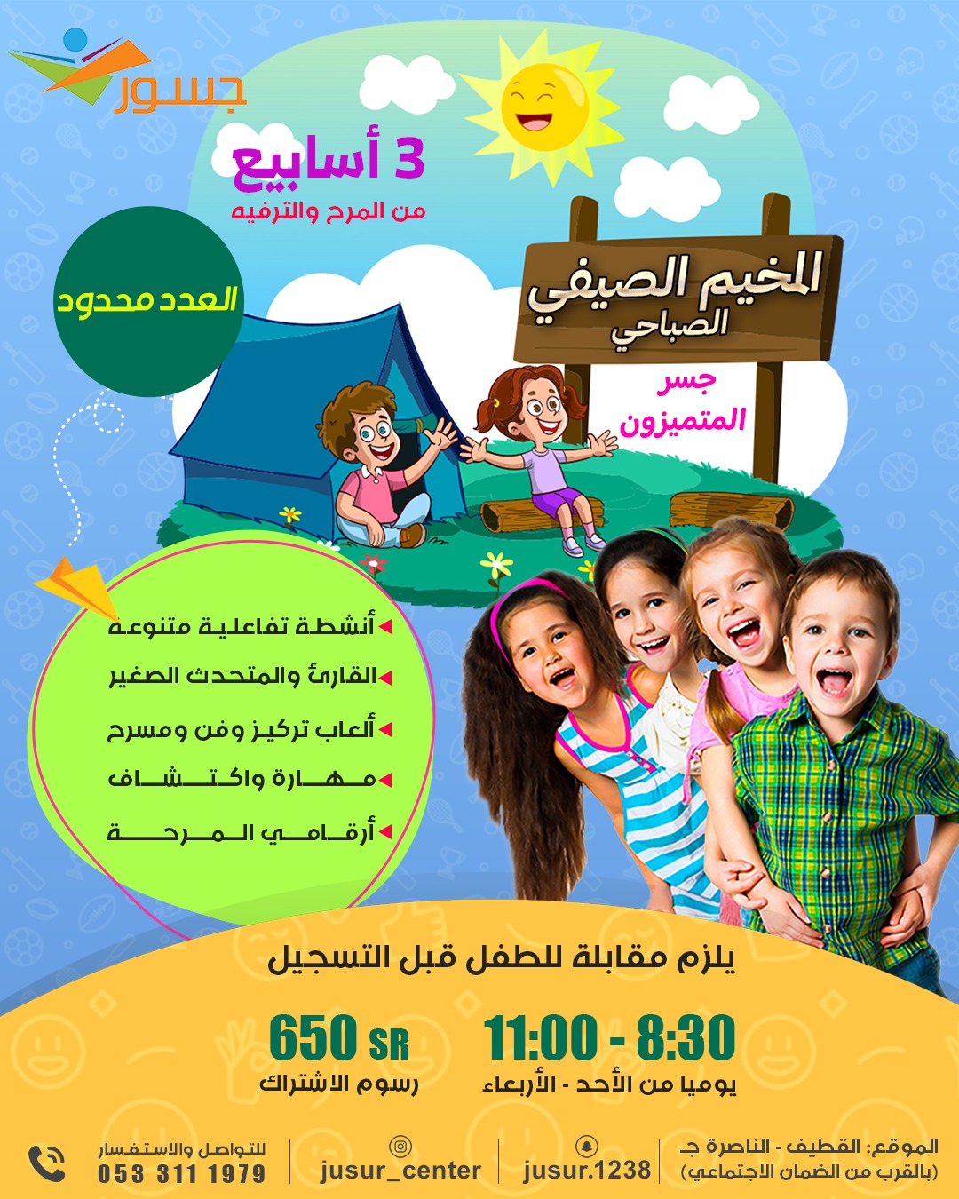 رسوم الاشتراك للمخيم الصيفي: 650 ريال