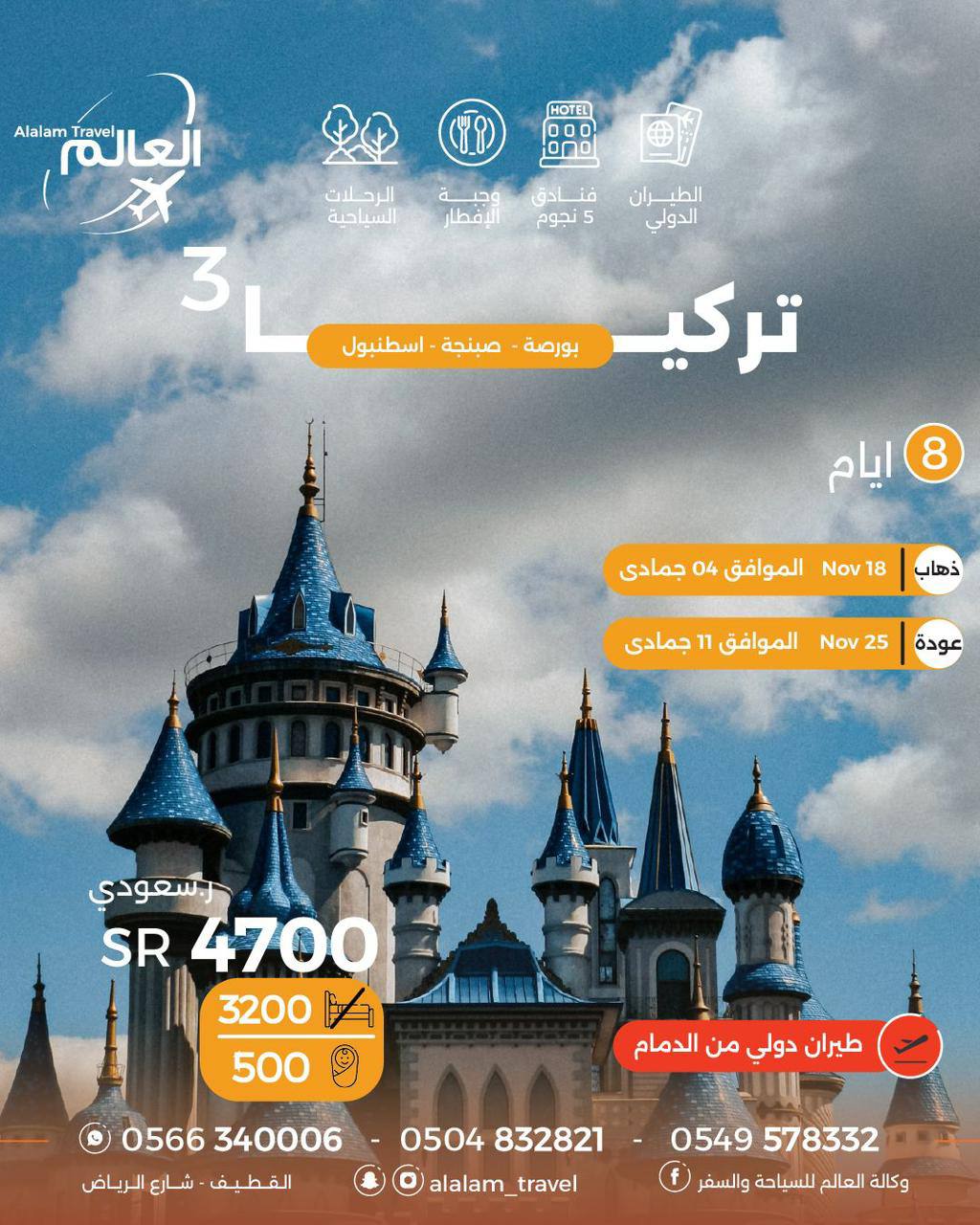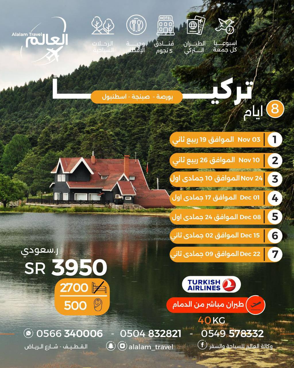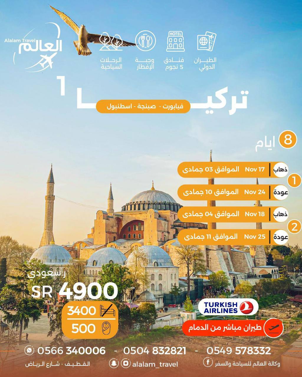 • ‏🇹🇷 تركيا 8 ايام 3950 ريال