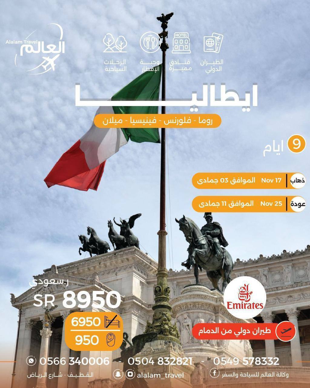 • ‏🇮🇹ايطاليا 9 ايام 8950 ريال