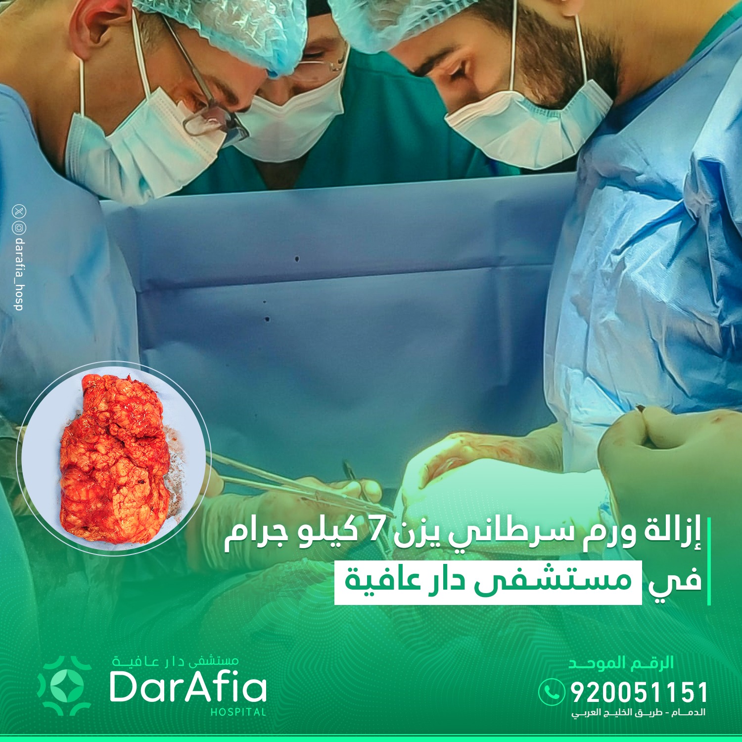 إزالة ورم سرطاني يزن 7 كيلو جرام في ”مستشفى دار عافية“