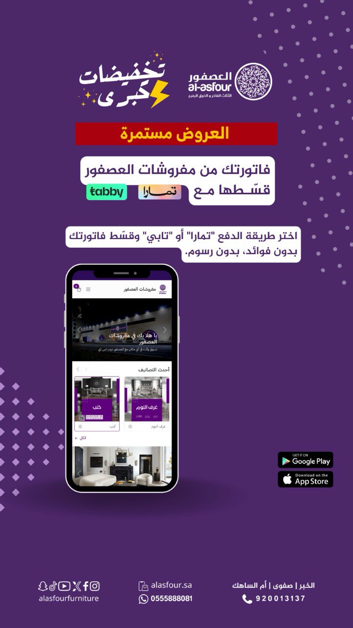 حمل تطبيق مفروشات العصفور.. واستمتع معنا بتجربة فريدة للتسوق.