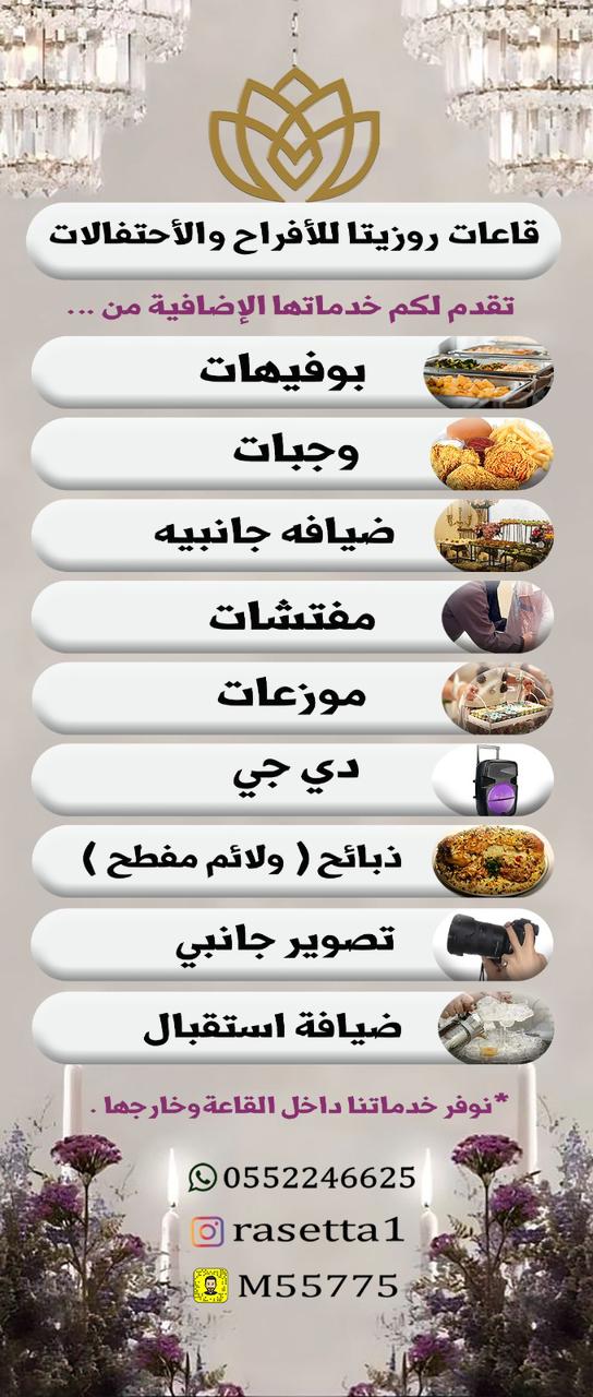 قاعات روزيتا الملكية وروزيتا فلاور بـ 3200 ريال فقط