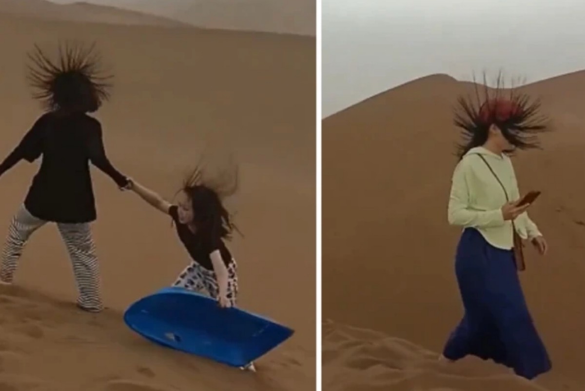 وأعاد المسند نشر فيديو عبر حسابه على منصة ”إكس“ يظهر مجموعة من الأشخاص في إحدى الصحاري وهم يلتقطون صورًا تذكارية لشعرهم المنتصب، معلقًا بأن هذه الظاهرة تحدث نتيجة وجود شحنة كهربائية في الغلاف الجوي قد تُنذر بحدوث صاعقة.