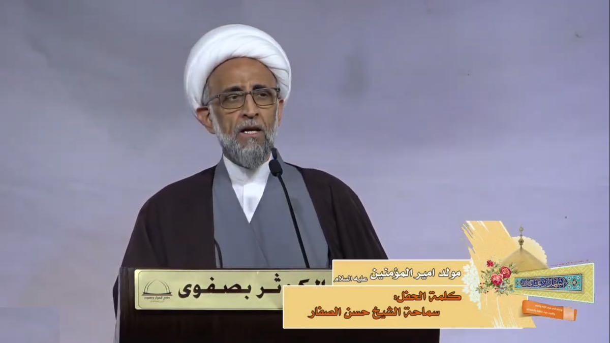 جاء ذلك ضمن الكلمة التي ألقاءها سماحته في الحفل الذي أقيم في جامع الكوثر بصفوى بمناسبة ذكر ميلاد أمير المؤمنين علي
