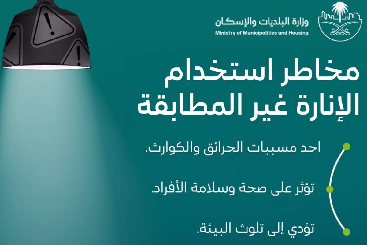 حذرت وزارة البلديات والإسكان من مخاطر استخدام الإنارة غير المطابقة للمواصفات والمقاييس، مُشددةً على التأثيرات السلبية التي قد تُلحقها بسلامة الأفراد والبيئة والممتلكات.