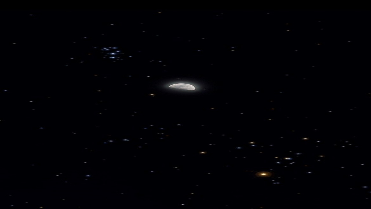 وأوضح أن القمر والثريا يُشكلان لوحةً فلكيةً بديعة، وعندما يقترب القمر من عنقود الثريا النجمي، كان العرب يصفون هذه الظاهرة بقولهم: ”القمر قارن الثريا“، في إشارة إلى التقارب الظاهري بينهما في سماء الليل.