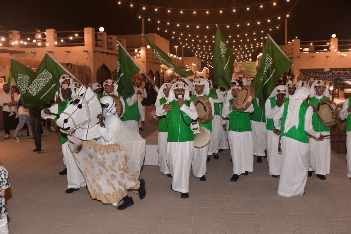 وتنوعت فعاليات ”ليالي التأسيس“ لتشمل عروض الفلكلور الشعبي، والأغاني الوطنية، وعروض الخيالة والصقارة، ومجسمات تراثية.
