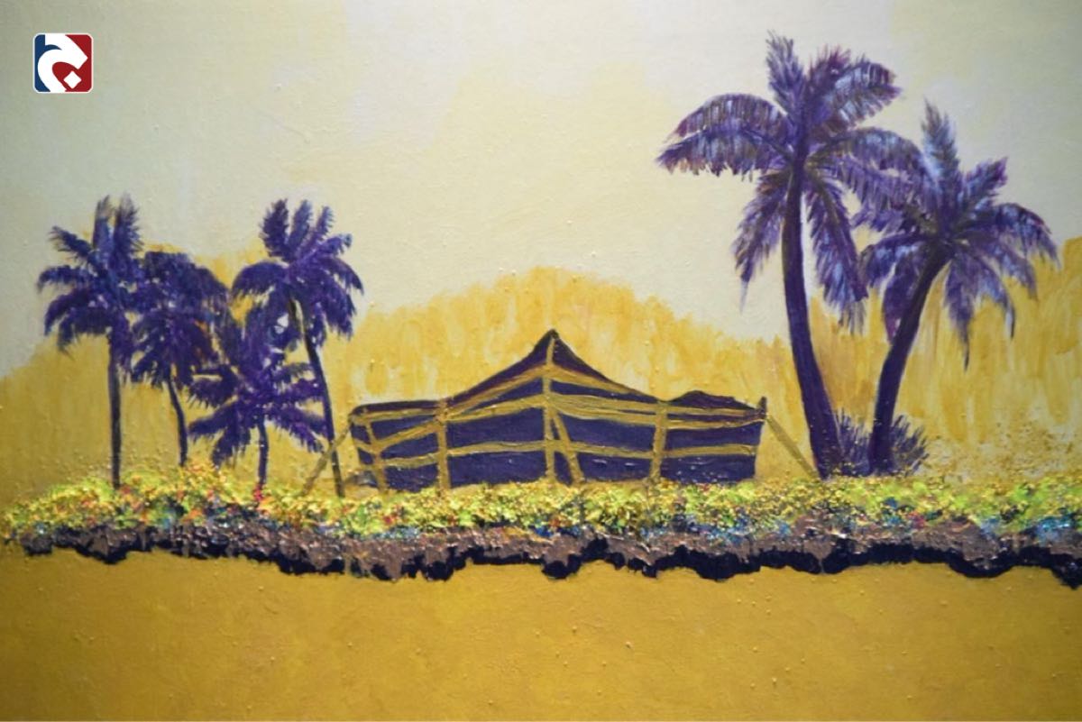 وكشف الفنان أسامة صالح القيسي عن تفاصيل لوحته المشاركة، موضحًا أنه استغرق 15 يومًا في رسمها، بمعدل 15 ساعة عمل يوميًا، وهي لوحة زيتية قياس 100 × 70 سم.