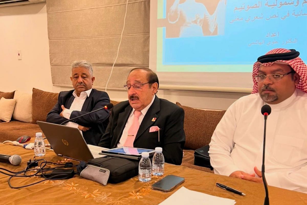 وقدّم الهاشمي، خلال المحاضرة التي تضمنت عرضًا مرئيًا، تحليلاً شاملاً لقصيدة ”عواطف حائرة“ التي غيّرت أم كلثوم اسمها إلى ”ثورة الشك“، مؤكدًا أنها أصبحت أيقونة للغناء الفصيح.