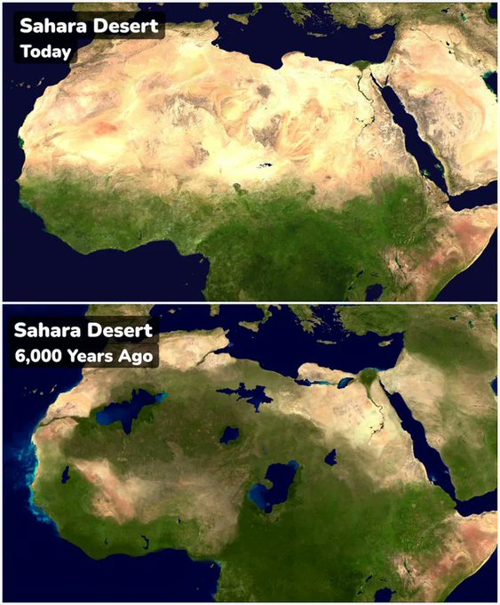 وأوضح أن صورة جغرافية حديثة أظهرت مقارنة مذهلة بين الوضع الحالي لهذه المناطق وما كانت عليه قبل نحو 6000 عام، حيث كانت تنعم بازدهار بيئي غير مسبوق.