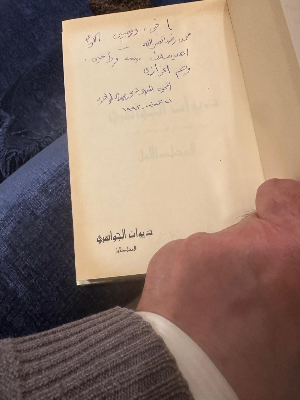 وعلى الرغم من هذه الحفاوة، أكد نصر الله أن حنين الجواهري لوطنه كان طاغيًا، حيث سرعان ما استدعى قصيدته الشهيرة ”حييتُ سفحكِ عن بعدٍ فحييني.. يا دجلة الخير، يا أم البساتين“ وبدأ يرددها بشجن نجفي شفيف بمجرد وقوفه على صحراء نجد التي ذكرته بامتدادها إلى العراق.