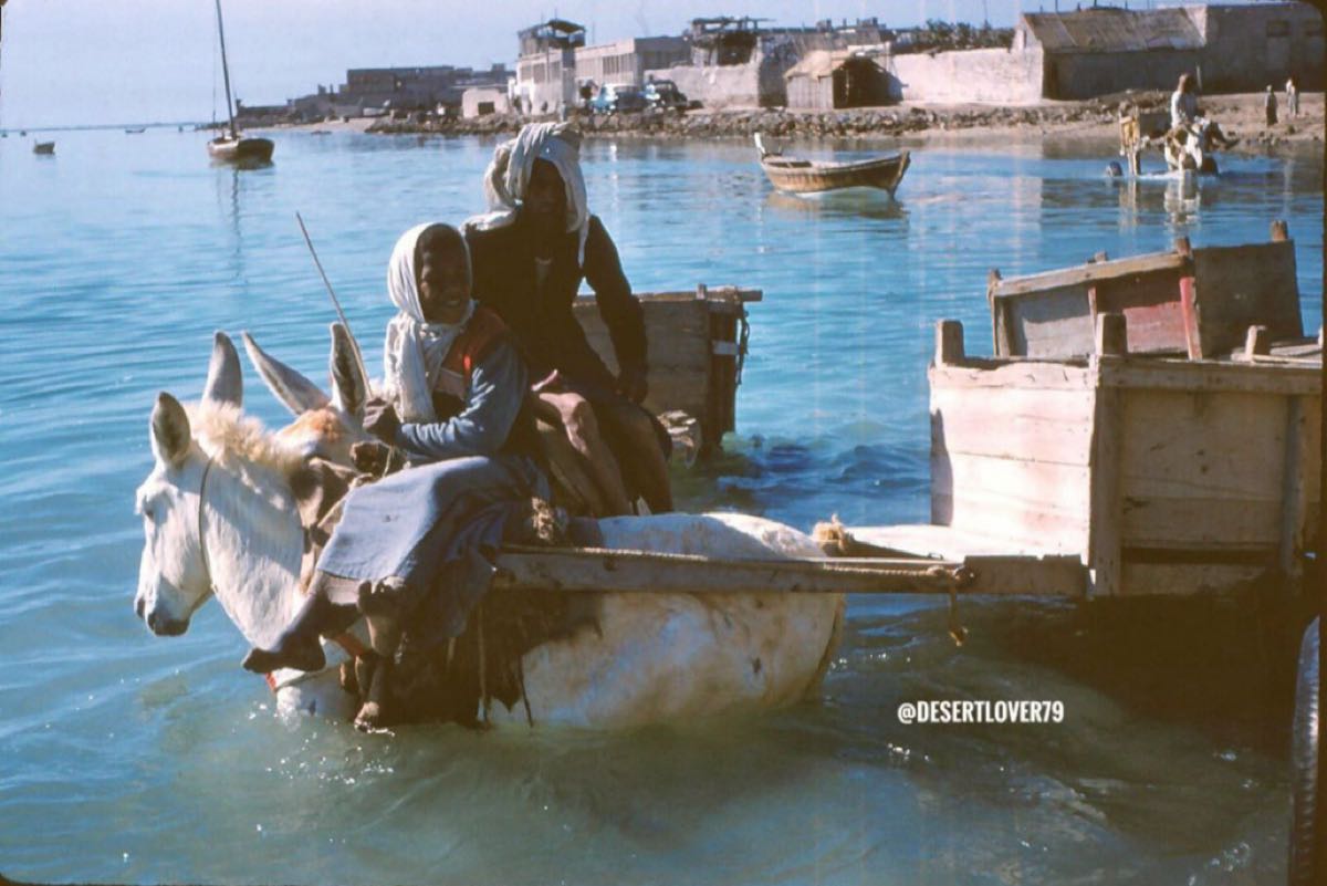 وتعكس الصورة النادرة جانبًا من التفاعل الثقافي والحضاري، حيث يظهر فيها الزوار الأجانب يخوضون تجربة التنقل التقليدي وسط بيئة بحرية، في مشهد يُجسد نمط الحياة في القطيف وجزيرة تاروت قبل أكثر من ستة عقود.