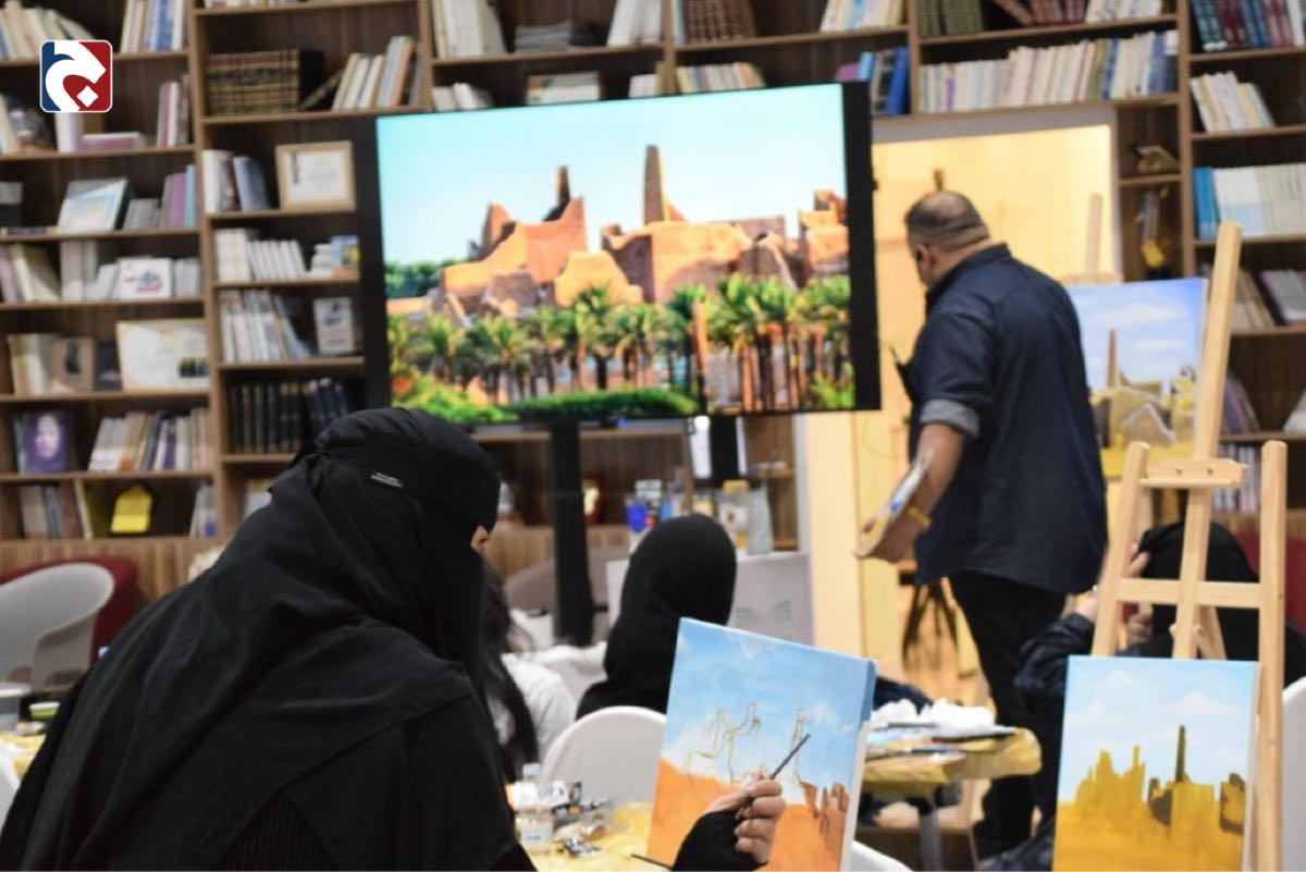 وشهد المعرض كذلك ورشة ثانية بعنوان ”الرسم بالألوان الأكريليك“، قدمها الفنان علي عبدالحميد، وركّزت على رسم معلم قصر الدرعية التاريخي، بوصفه رمزًا وطنيًا حاضرًا في الاحتفالات الرسمية، ومنها يوم التأسيس.