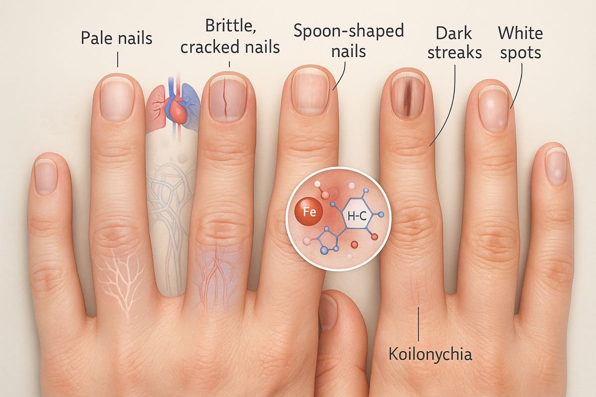 وربط بين الأظافر الهشة التي تتكسر أو تتشقق بسهولة وبين نقص فيتامينات أساسية كالحديد والزنك والبيوتين، أو احتمال وجود اضطرابات في وظائف الغدة الدرقية.