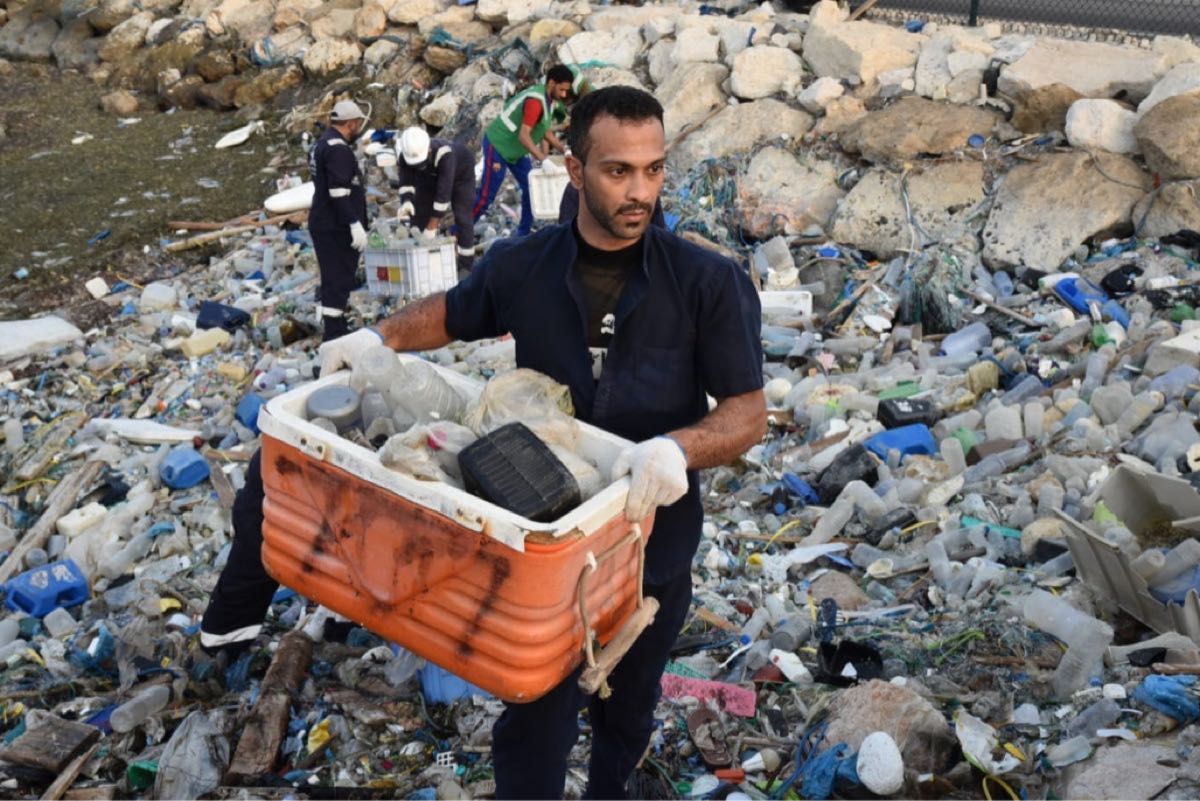 وشارك المتطوعون في أعمال تنظيف شاطئ الفرضة من بقايا الشباك والمخلفات البلاستيكية والعلب المعدنية التي تشكل تهديدًا للحياة البحرية.