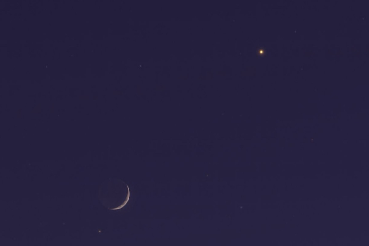 ودعا المهتمين إلى توجيه أنظارهم نحو الغرب بعد غروب الشمس مباشرة، والاستمتاع بالمنظر سواء بالعين المجردة، أو باستخدام منظار بسيط لزيادة وضوح التفاصيل، مؤكداً أنها فرصة مثالية للتصوير الفلكي باستخدام عدسات متوسطة أو عريضة.