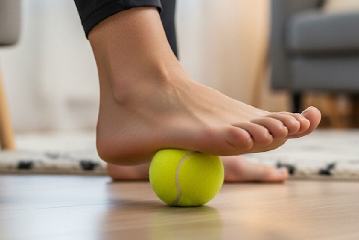 أولى هذه الخطوات هي تدليك باطن القدم باستخدام كرة صلبة، مثل كرة التنس أو الجولف، لتنشيط الدورة الدموية وتخفيف الألم.