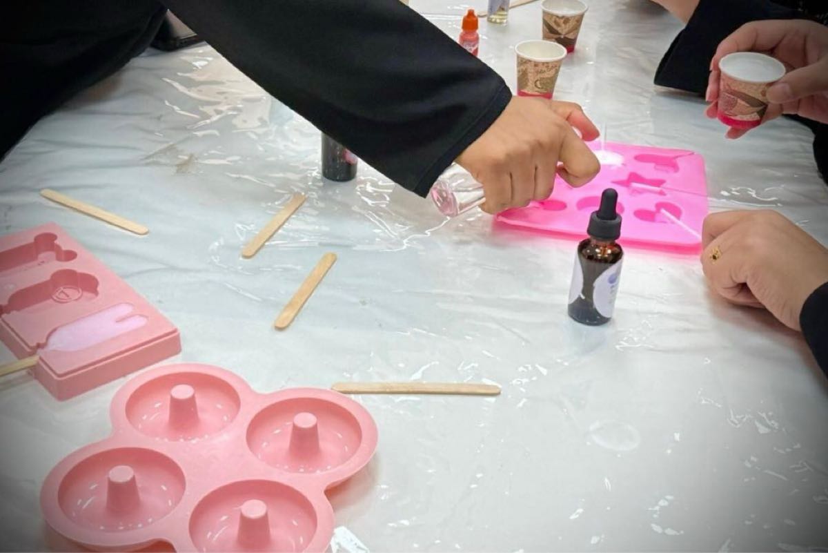 وتناولت الورشة محاور تطبيقية أساسية شملت التعريف بأنواع الصابون المختلفة، وأساليب تشكيله الفنية، بالإضافة إلى آليات دمج المكونات الطبيعية مع الألوان والعطور لإنتاج منتجات عالية الجودة وذات قيمة تسويقية.