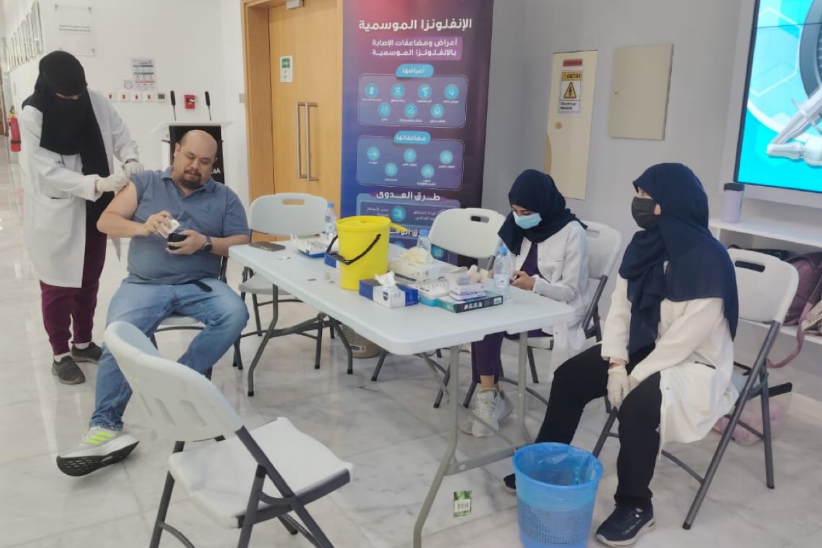 وبالتوازي مع هذه الجهود التوعوية، انتقلت الخدمات الوقائية إلى خارج أسوار المنشآت الصحية، حيث نفذ مستشفى القطيف المركزي، ممثلاً بفريق تجربة المريض وقسم التمريض، حملة ميدانية للتطعيم ضد الإنفلونزا الموسمية.