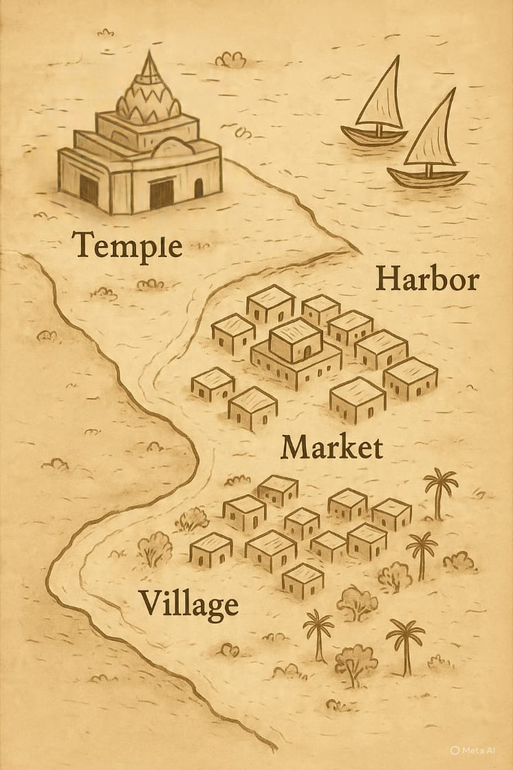 لو تجولتَ في السوق فسترى مهرجاناً من البضائع المختلفة، التي حملتها السفن من الهند والسند وأقاصي الشرق، كما من ”عيلام“ وبلاد الرافدين و”مجان“ وغيرهم، ستجد الحرير والكتان والبخور، واللِّبان والمر، كما اللؤلؤ والتوابل وغيرها، ثمة طريق ترابي ممهد تُنقَل هذِه البضائع عبره من الميناء بواسطة عربات تجرها الخيول.. وقد يرافقها بعض الفرسان للحراسة. تلتمع أسلحتهم البرونزية في الشمس...