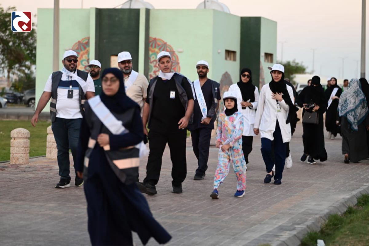 وتصدر المشهد الميداني انطلاق مسيرة المشي الجماعي التي قادها «فريق مشاة عشتار الرياضي»، حيث احتشد المشاركون عند الساعة الثالثة والنصف عصراً، في رسالة عملية تؤكد أن الرياضة هي خط الدفاع الأول ضد الأمراض المزمنة.