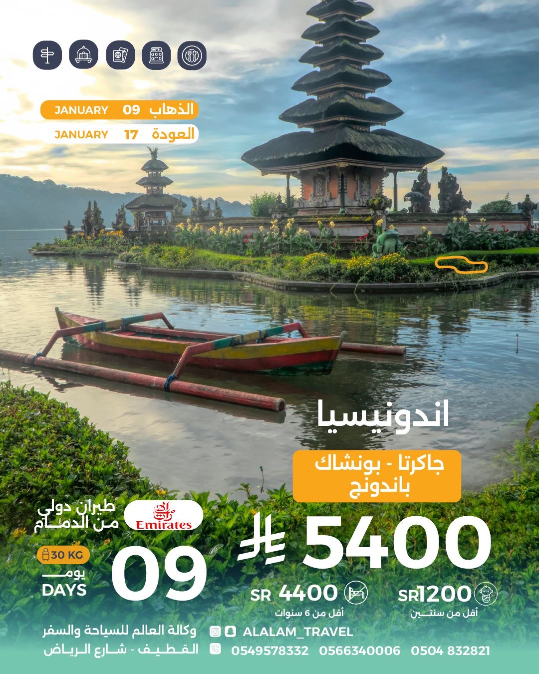 🇮🇩 اندونيسيا 9 ايام 5400 ريال