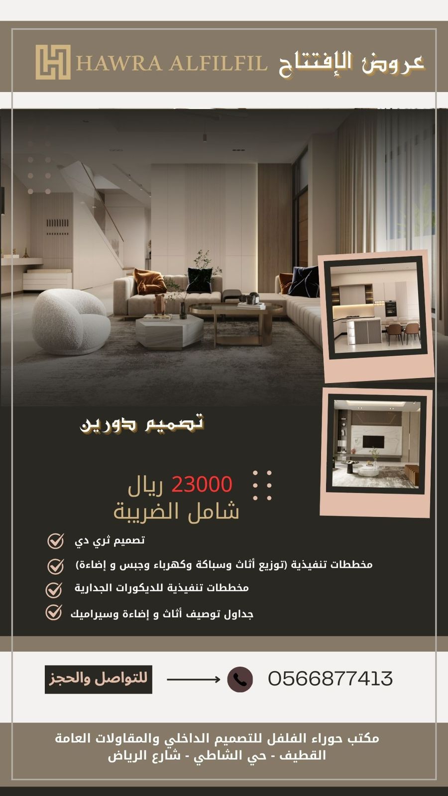 مكتب المهندسة ”حوراء الفلفل للتصميم الداخلي“