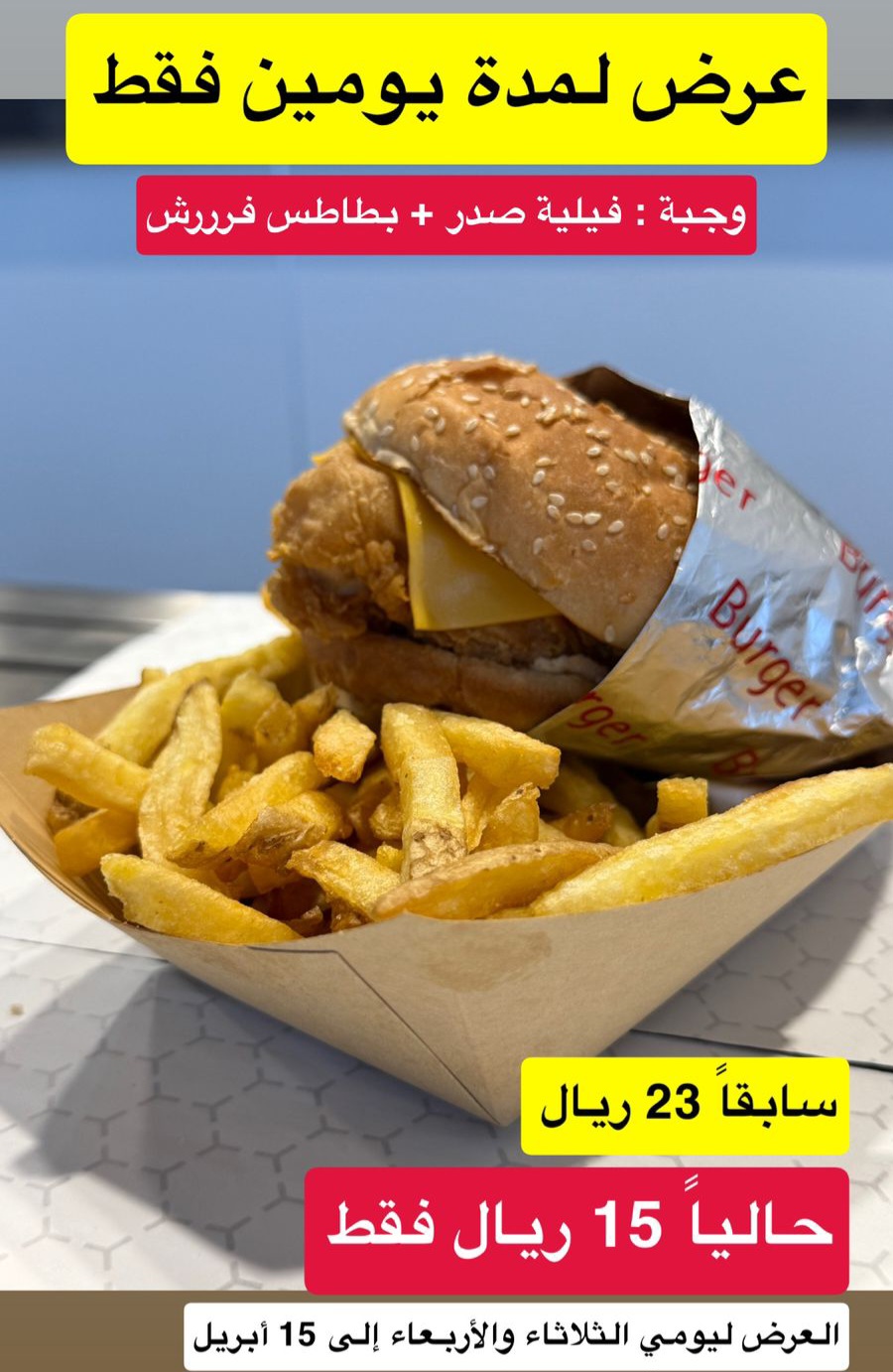 اليوم وبكرة: وجبة برجر فيلية مع بطاطس ب 12 ريال