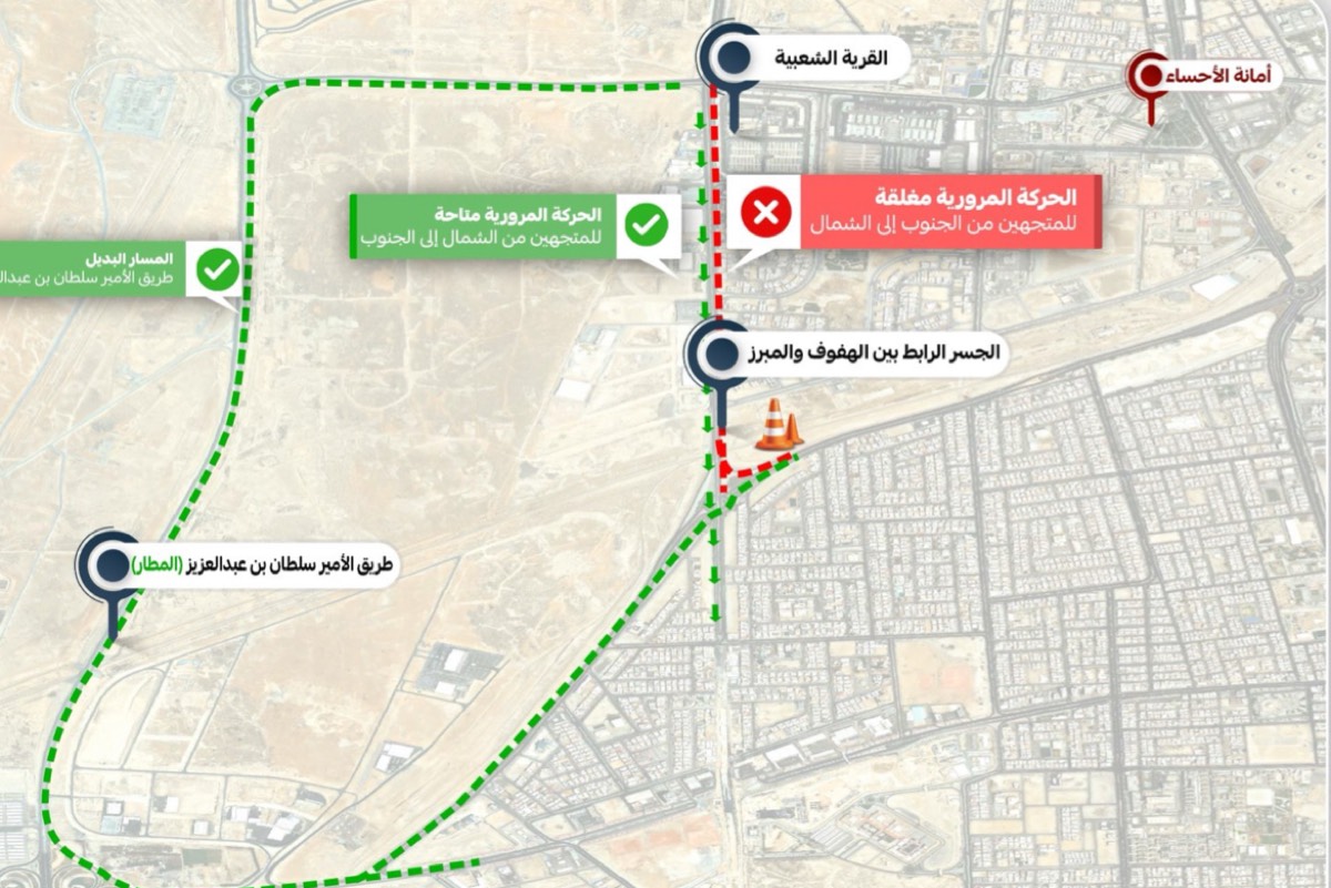الأحساء.. إغلاق جسر الهفوف - المبرز 21 يومًا للصيانة.. ما المسارات البديلة؟
