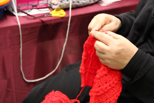 وشاركت هدى الزاهر مع سبع سيدات بركن الكروشية والتريكو، مستعرضات منتجاتهن من قبعات، ومفارش، واكسسوارات، وملابس أطفال، وصممن بطانية من الكروشيه والتريكو يعود ريعها لصالح الجمعية.