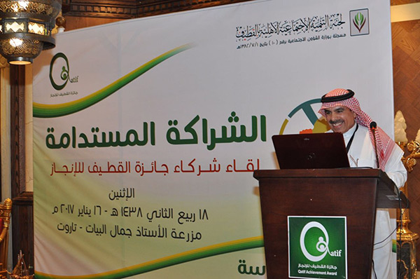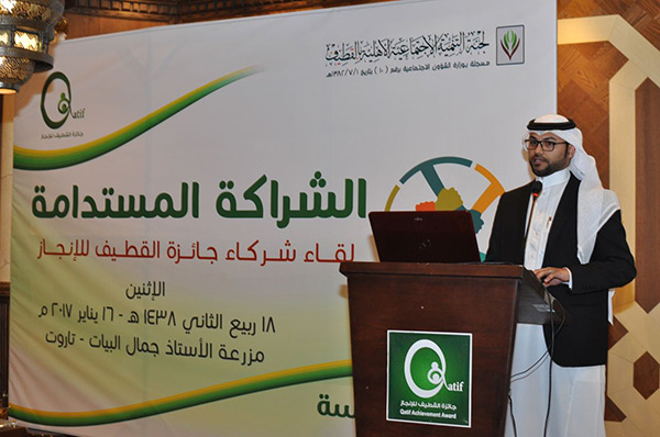 جائزة القطيف للإنجاز - تبرعات الشركاءوأشار الى نتائج لقاء الشراكة السابق وتطوير لآلية التداول الإداري وتحديثا للائحة التنظيمية وانعقادا للجمعية العمومية وانتخاب أعضاء الأمانة الحاليين وما شهدته النسخة السادسة من أنشطة غير مسبوقة في الوصول إلى شرائح المجتمع في أكثر من 11 بلدة في المحافظة.
