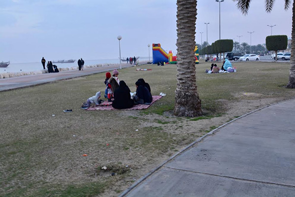 وفضل بعض الأهالي المكوث في فترة الظهيرة لتناول الغداء، وساعدهم في ذلك الجو الغائم بقضاء اوقات ممتعه ومريحة لفترات طويلة من الوقت.