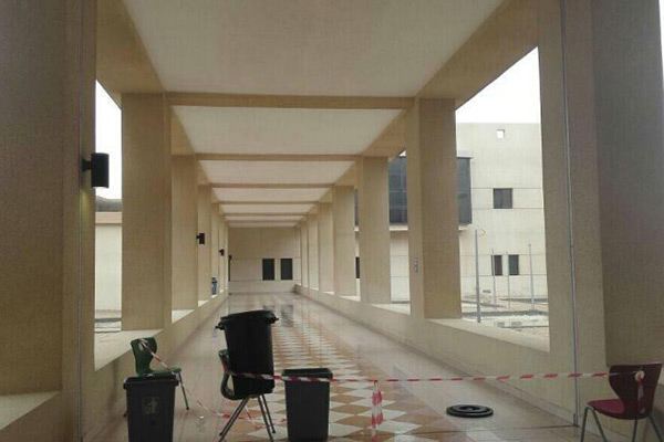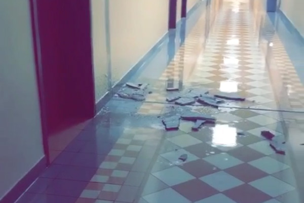 واستنكرت الطالبات عبر مواقع التواصل الاجتماعي تويتر سقوط أسقف المبنى بالرغم من أن ”المبنى جديد ولم يتجاوز العامين“.
