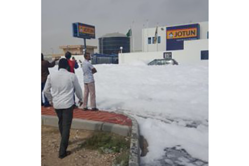 وإن كانت اصطناعية، إثر خطأ ارتكبه موظف في إحدى الشركات المتخصصة في إنتاج الأصباغ، الذي ضغط على زر نظام الحرائق من دون قصد، فكانت النتيجة أن ظهرت على مياه الأمطار رغوة كثيفة تشبه الثلج المتساقط، ووصف مغرّد في موقع التواصل الاجتماعي «تويتر» المنظر بأنه «رائع وبديع، ربما لن يتكرر».