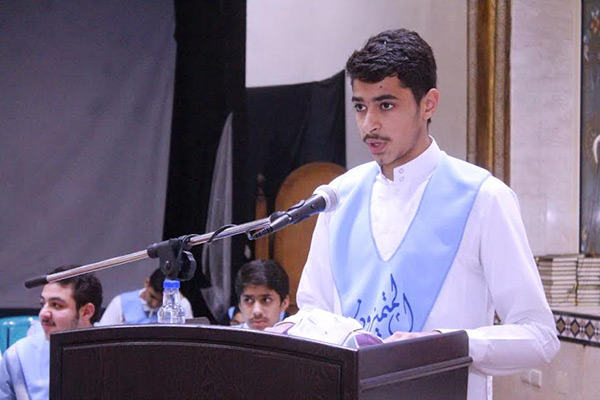 وبدأ الحفل بآيات من الذكر الحكيم تلاها الطالب محمد السادة، تلتها كلمة الطلاب ألقاها الطالب العباس علي الشيتي معبراً فيها عن سروره وسعادته لمشاركته في برنامج الدورات الثقافية «المتميزون»