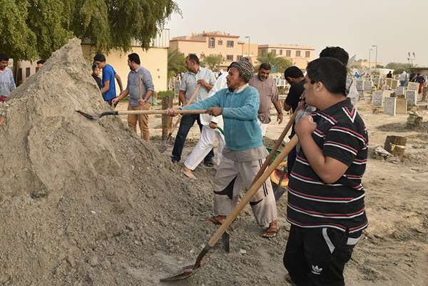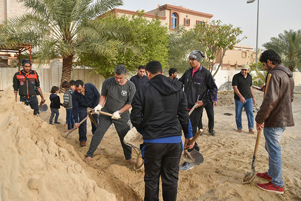 وثمن عدد من أهالي القطيف جهود المتطوعين في تلبية نداء العمل التطوعي بإصلاح المقابر، حيث توافد الشبان وكبار السن للعمل بأسرع وقت لحفظ كرامة الموتى.