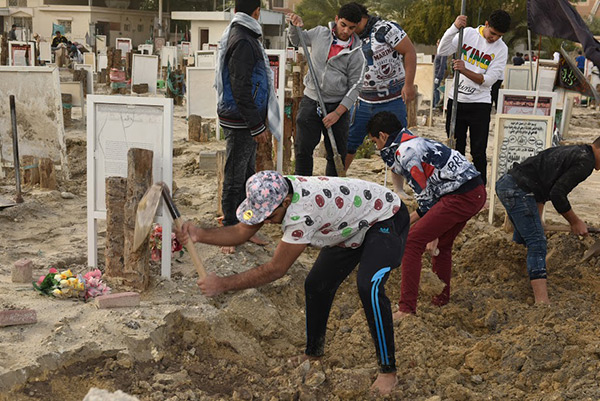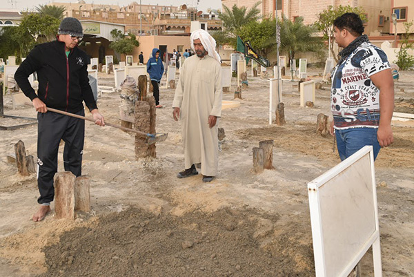 وانضم بعض الأهالي لحملة التسوية والإصلاح للقبور التي حدث في بعضها فجوات وحفر كبيرة، فضلًا عن التصدع الحاصل في أرض المقبرة.