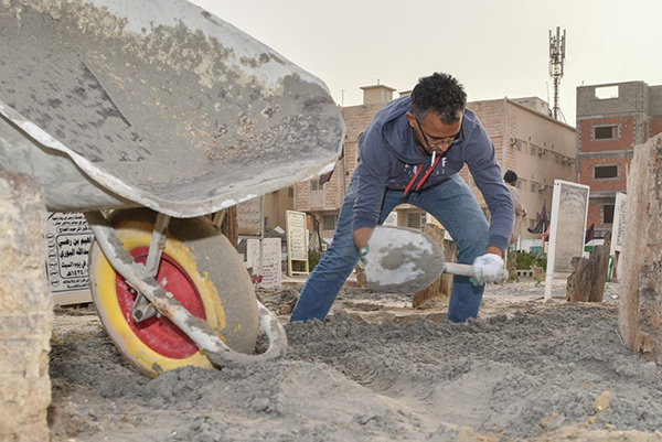 وتكاتفت سواعد الشباب في الحملة التي قامت بها «مجموعة دار السلام» بالجارودية لترميم القبور التي تعرضت للجرف والانهيار بفعل الأمطار.