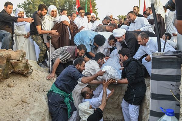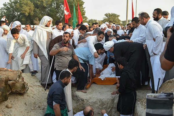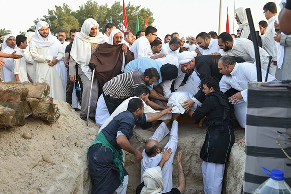 وشارك في التشييع المئات من رجال الدين والخطباء والمثقفين من القطيف والأحساء.