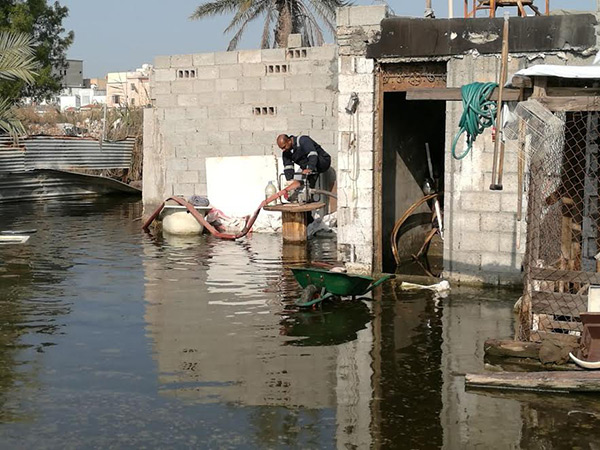 وقال: لقد استأجرنا ”مواطير“ من المحال التجارية، لشفط المياه ولكن البلدية أخبرتنا بأن ذلك ممنوع، فقمنا بإزالتها فورًا.