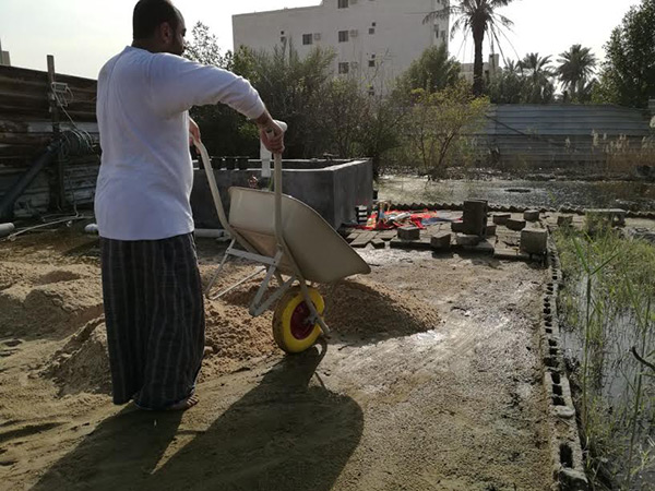وأوضح بأنهم، وبعد فقد الأمل قاموا بإحضار الرمال ووضعها على المياه، لحل مشكلة تجمعها.