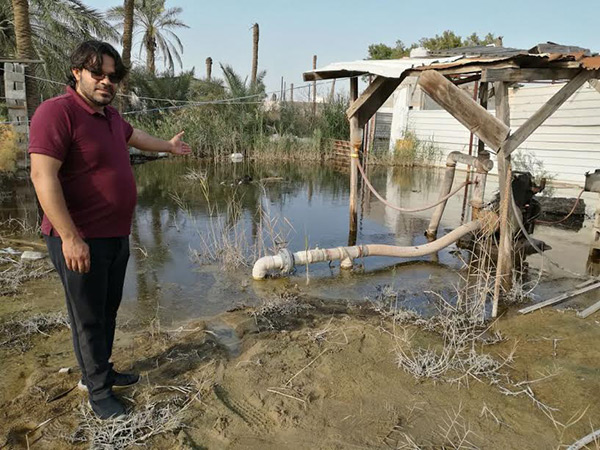 وذكر بأن الغرف في مزرعته تضررت، كذلك الدواجن بسبب ارتفاع مستوى المياه - الغير صالحة -، كذلك تجمع الحشرات والبعوض والناموس.
